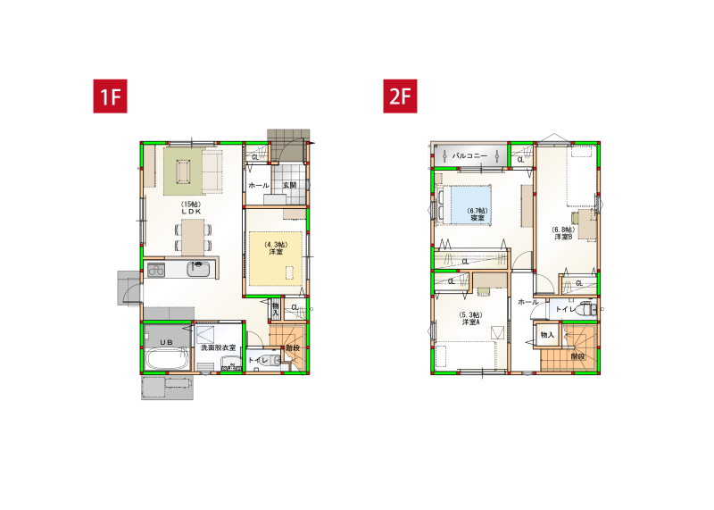 ★間取り:4LDK(1F:LDK15.1帖、洋室4.5帖、2F:寝室7.7帖、洋室6.6帖、洋室5.1帖)