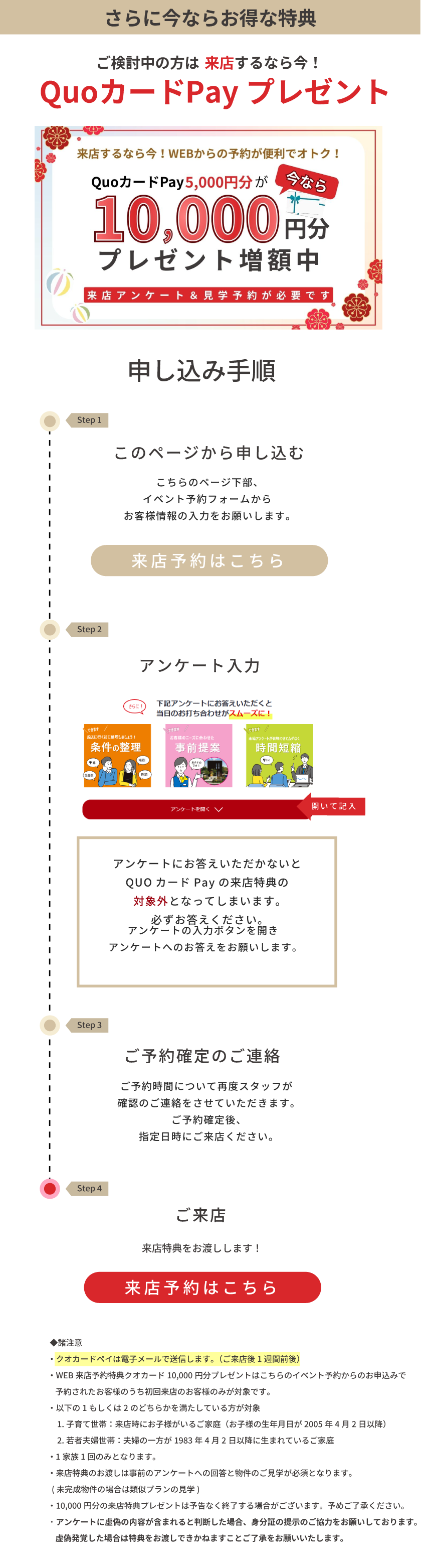 - 対象:2月28日までにご来店頂き、来店アンケート記載と物件見学をして頂いたお客様。
