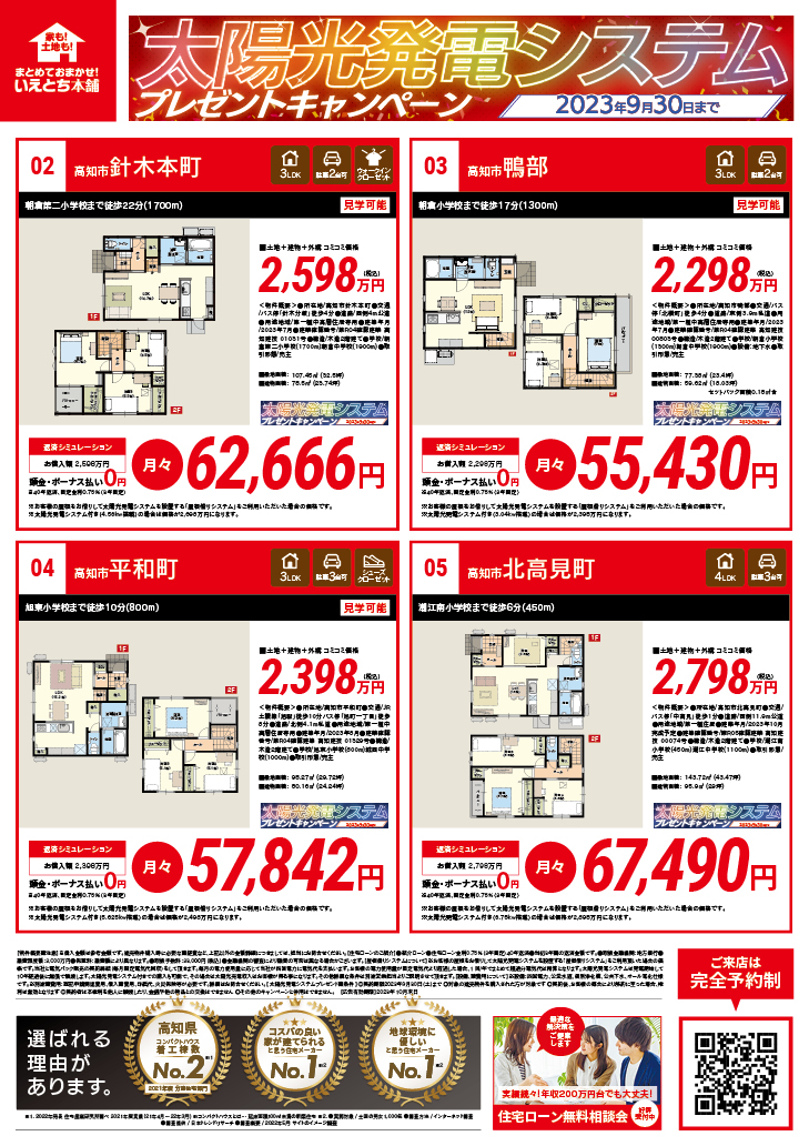 【 太陽光発電システムプレゼント諸条件 】◎契約期限2023年9月30日(土)◎当社が指定している建売物件を購入された方◎契約後、お客様の都合により解約に至った場合、権利は無効となります。