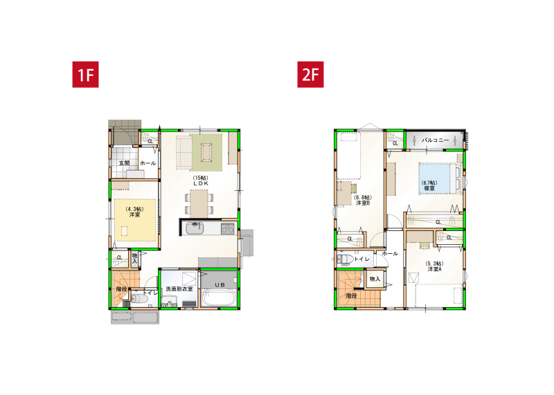 ★間取り:4LDK(1F:LDK15.1帖、洋室4.5 2F:洋室5.1帖、洋室6.6帖、寝室7.7帖)