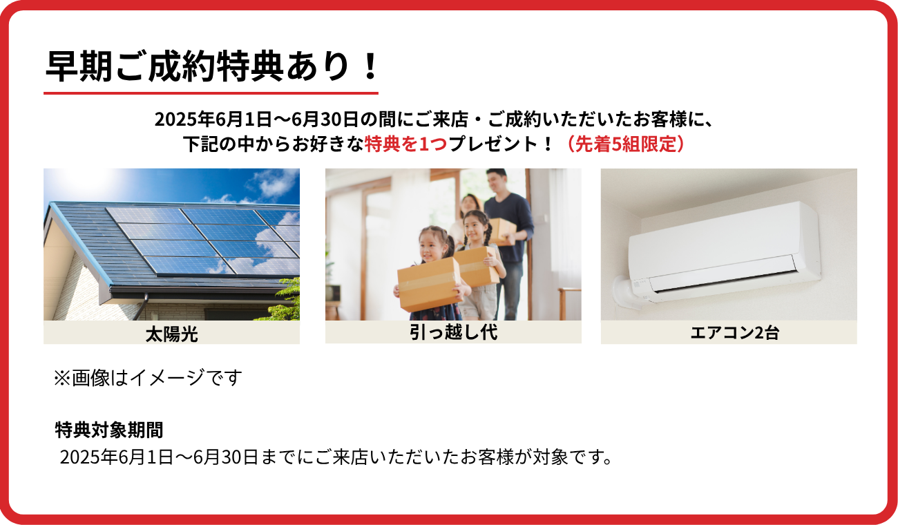 【6月成約特典】早期購入特典 (未完成物件見学・3大成約特典プレゼント🎁)