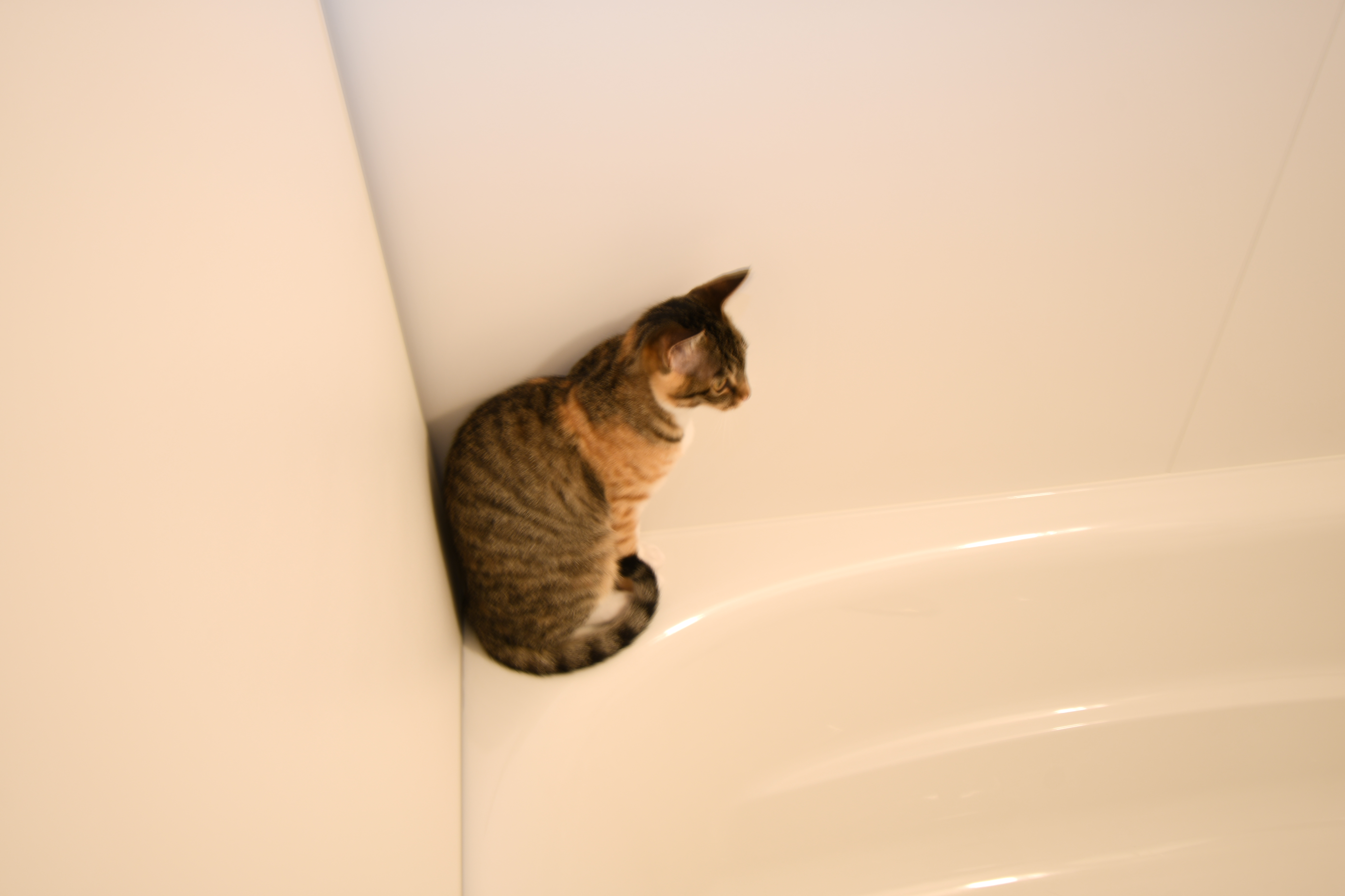 浴室暖房であたたまった空間は、猫のうずちゃんもお気に入り。浴室の扉が開くとやってくる。