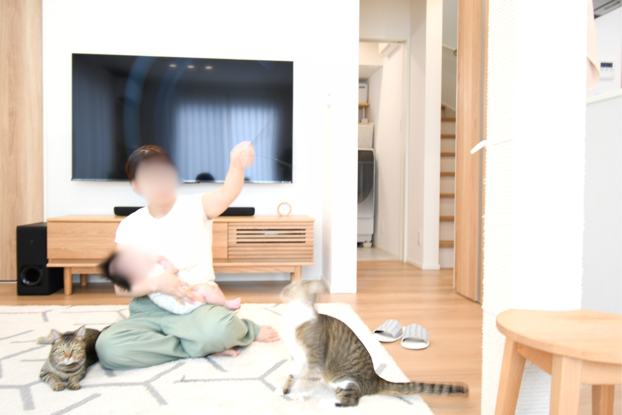 待ちに待った完成後に猫を迎えて、その後に子どもにも恵まれて、幸せがどんどん増えて。これからも家族みんなが笑顔で、楽しく暮らしていきたいです。