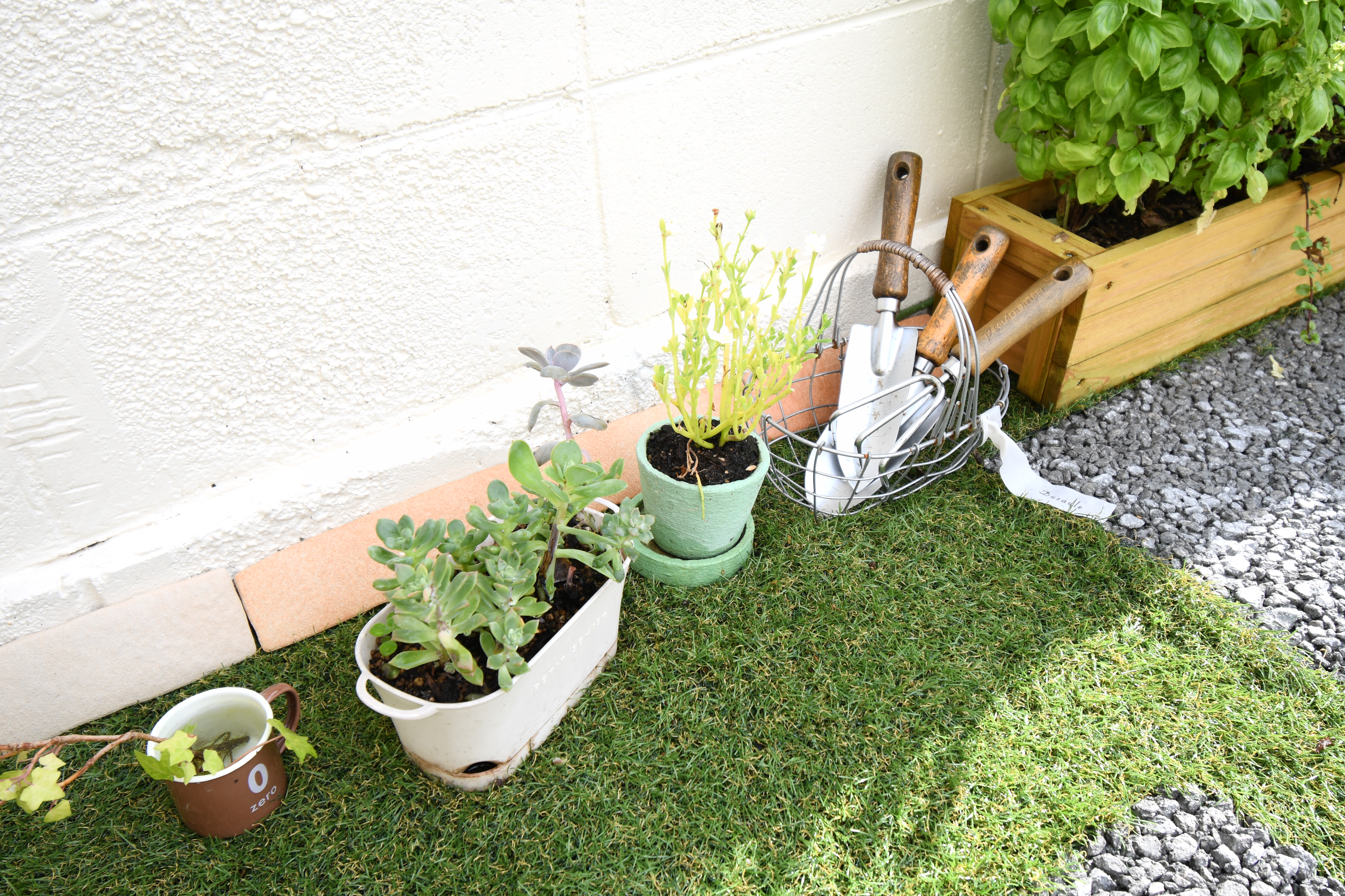 お庭は、ご主人が季節ごとに植え替える草花のある手作り空間。